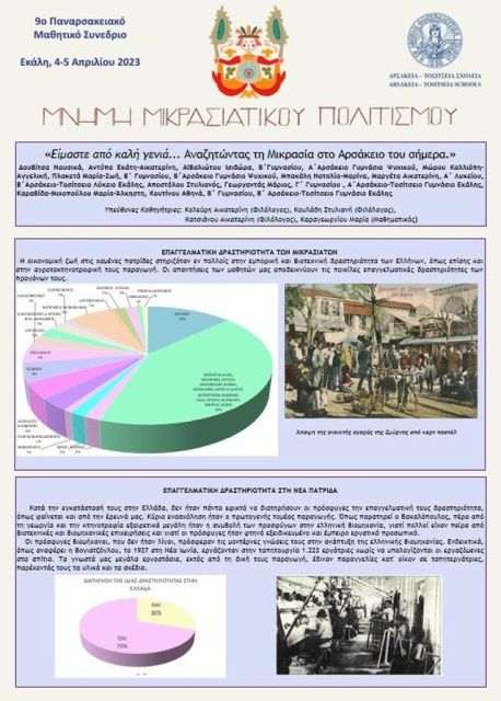 Μαθήτριες τού Α΄ Αρσακείου Γυμνασίου Ψυχικού, στις 4 Απριλίου 2023, παρουσίασαν την ερευνητική εργασία «Είμαστε από καλή γενιά… Αναζητώντας τη Μικρασία στο Αρσάκειο τού σήμερα» στο πλαίσιο τού 9ου Παναρσακειακού Μαθητικού Συνεδρίου «Μνήμη Μικρασιατικού Πολιτισμού». Για την εργασία αυτή εργάστηκαν οι μαθήτριες τής Β΄ τάξης: Εκάτη-Αικατερίνη Αντύπα, Ισιδώρα Αϊβαλιώτου και Ναυσικά Δουβίτσα με την επίβλεψη τής φιλολόγου κ. Αικατερίνης Κολεύρη.