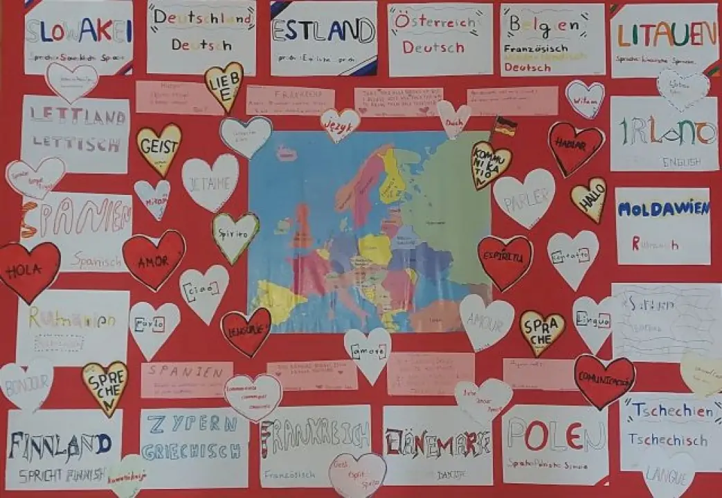 Οι μαθητές τής Γ΄ τάξης συνεργάστηκαν σε μικρές ομάδες και με την καθοδήγηση των καθηγητριών τους κ. Αλίκης Παπασταθοπούλου, κ. Ευαγγελίας Δεμέστιχα και κ. Δανάης Κουτρομάνου συνέλλεξαν πληροφορίες για τις γλώσσες τής Ευρώπης.