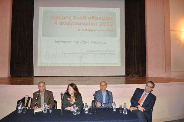 Τα Αρσάκεια Γυμνάσια Ψυχικού διοργάνωσαν και εφέτος με εξαιρετική επιτυχία, για ένατη συνεχή χρονιά, την εκδήλωση με τίτλο «Ημέρες Σταδιοδρομίας».Η εκδήλωση αυτή, που εντάσσεται στο πλάισιο τού Σχολικού Επαγγελματικού Προσανατολισμού στα Αρσάκεια Σχολεία, πραγματοποιήθηκε τη Δευτέρα 4 και την Τετάρτη 6 Φεβρουαρίου 2019 στο Θέατρο των Αρσακείων Σχολείων Ψυχικού.