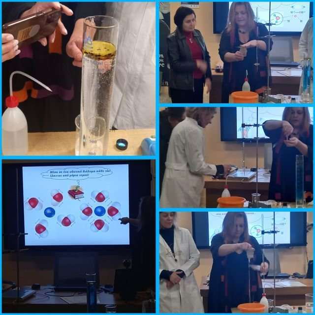 Η διδασκαλία είχε θέμα: «Το νερό στο παρελθόν, το παρόν και το μέλλον τού Σύμπαντος» και έγινε στο πλαίσιο τού σχεδίου δράσης: «Δημοτικό και Γυμνάσιο: συγκοινωνούντα δοχεία εκπαιδευτικών δράσεων». Οι μικροί μαθητές και οι μικρές μαθήτριες παρακολούθησαν με ζωηρό ενδιαφέρον και διατύπωσαν στοχευμένες ερωτήσεις για το νερό και τις ιδιότητές του. Εντυπωσιάστηκαν από τα πειράματα που είδαν, έμαθαν γιατί οι σταγόνες είναι σφαιρικές, γιατί τα έντομα περπατάνε στο νερό και γιατί το νερό μεταφέρει θρεπτικές ουσίες από τις ρίζες στα φύλλα, χωρίς να υπακούει στον νόμο της βαρύτητας!