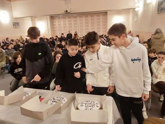 Έτσι, στο θέατρο των Σχολείων μαζεύτηκαν όλοι οι μαθητές τής Α΄ και Β΄ τάξης, καθώς και τα 5μελή προεδρεία τής Γ΄ τάξης, κόψαμε τις βασιλόπιτες και το φλουρί κέρδισε ένα τμήμα τής Β΄ τάξης.