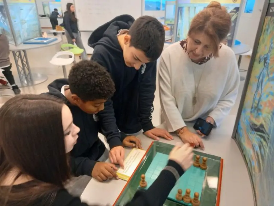 Β. Περιήγηση στα Εκθέματα της Αίθουσας Μαθηματικών – Πληροφορικής (Ακολουθούν μερικά εκθέματα, ενδεικτικά: Πυθαγόρειο Θεώρημα, Πύργος του Ανόι, Οστομάχιον του Αρχιμήδη, Γρίφος του Αϊνστάιν, Η πυραμίδα του Θαλή, Πυγολαμπίδες, Βαγονάκι, Κρυπτογράφηση).