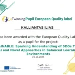 Το Α΄ Αρσάκειο Γυμνάσιο Ψυχικού βραβεύτηκε με την Ευρωπαϊκή Ετικέτα Ποιότητας από την Κεντρική Ευρωπαϊκή Υπηρεσία Υποστήριξης eTwinning για τη συμμετοχή ομάδας μαθητών και μαθητριών στο ευρωπαϊκό eTwinning έργο «SUSTAINABLE: Sparking Understanding of SDGs Through AI and Novel Approaches in Balanced Learning Environments».
