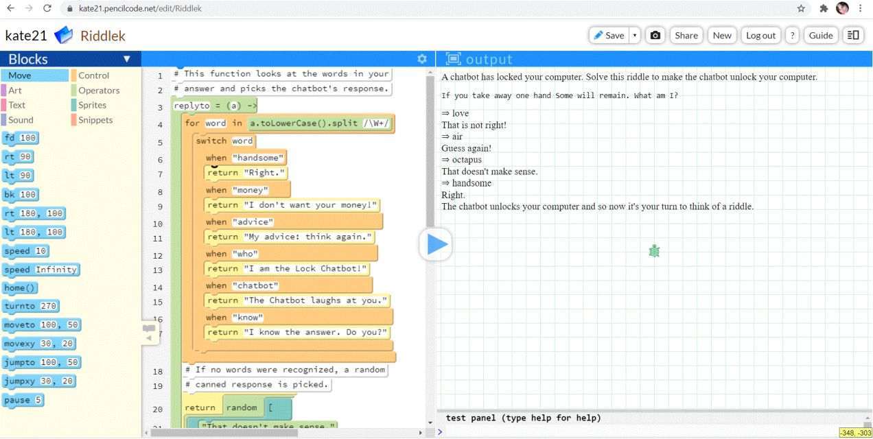 Make a chatbot – CODE WEEK CHALLENGE – L.E.T.W.O.T