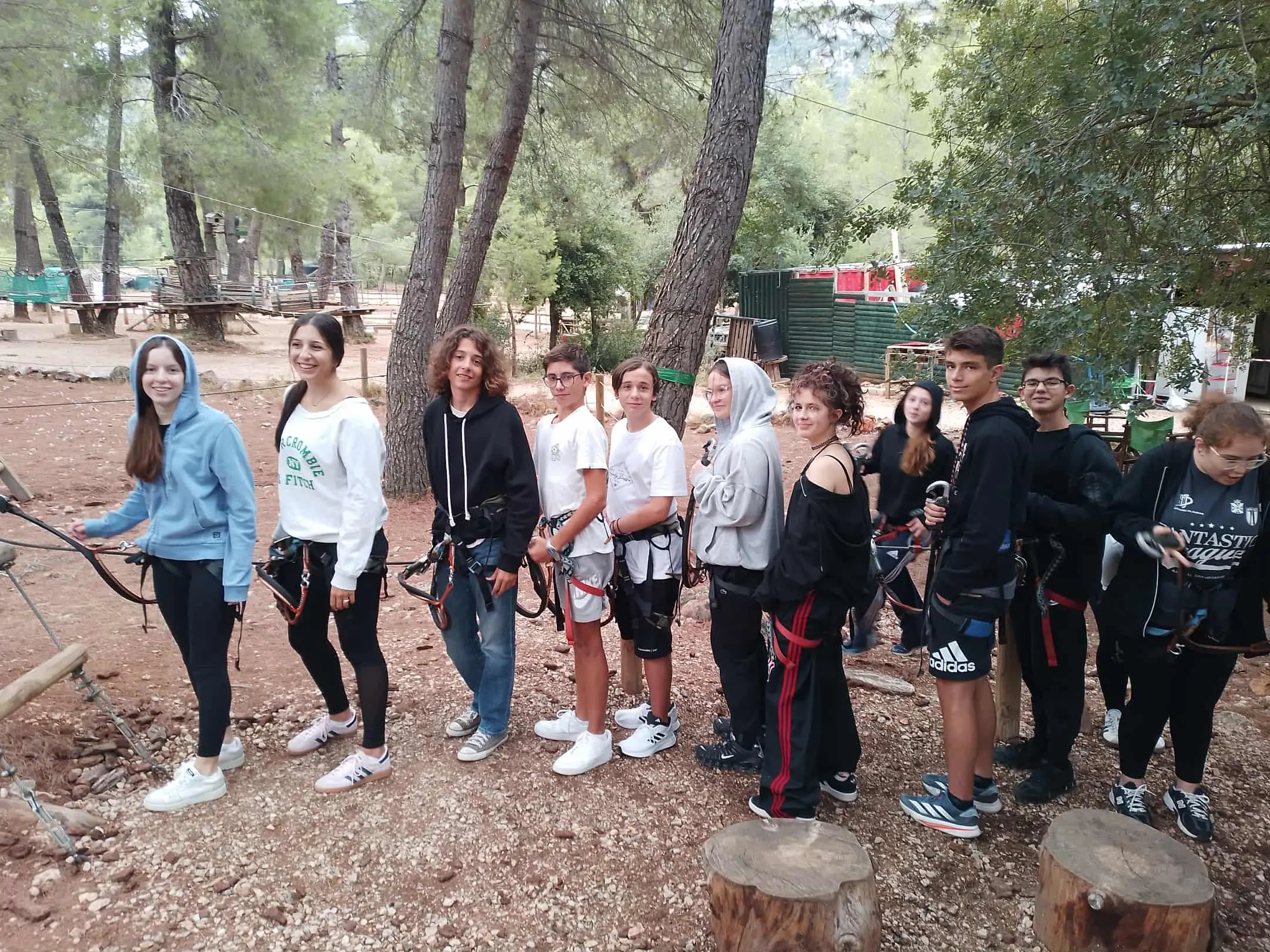 Στο Adventure Park οι μαθητές μας απασχολήθηκαν με δραστηριότητες στη φύση και στους αθλητικούς χώρους που διαθέτει το πάρκο. Πέρασαν μία μέρα ψυχαγωγίας, με φυσιολατρικές δράσεις και με έμφαση στην αθλητική και περιβαλλοντική εκπαίδευση. Οι μαθητές, αφού εκπαιδεύτηκαν από έμπειρους εξειδικευμένους αθλητές στα αγωνίσματα, επιχείρησαν να συμμετάσχουν και εκείνοι σ΄αυτά, με κατάλληλο εξοπλισμό και σε ασφαλείς συνθήκες στους χώρους τού πάρκου. Ανάλογα με τα ενδιαφέροντά τους επέλεξαν να σκαρφαλώσουν από δένδρο σε δένδρο, με τη χρήση ειδικού εξοπλισμού, ή άλλες δοκιμασίες αναρρίχησης και αθλητικές δραστηριότητες.