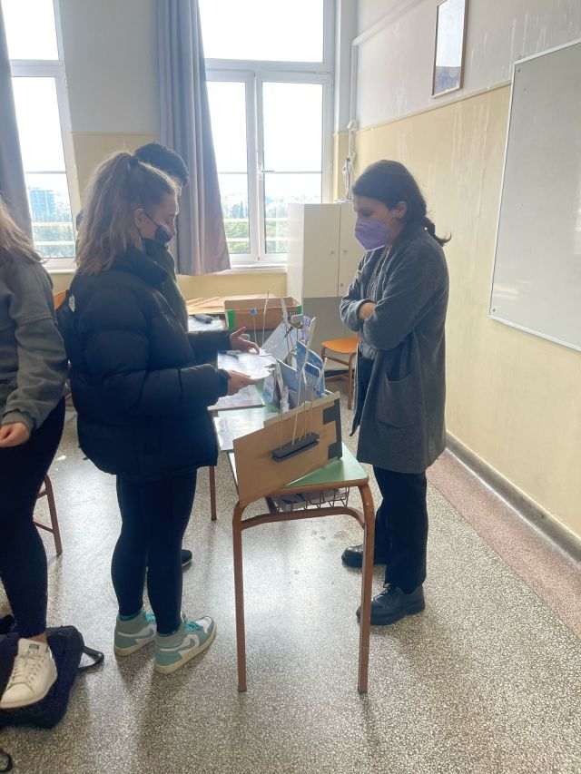 Στη συνέχεια η συγγραφέας επισκέφθηκε το Σχολείο και παρουσίασε στους μαθητές τής Α΄ τάξης, μέσα από μια τρισδιάστατη μακέτα που δημιούργησε και χρησιμοποίησε, τη ζωή και το έργο τού Δ. Σολωμού.