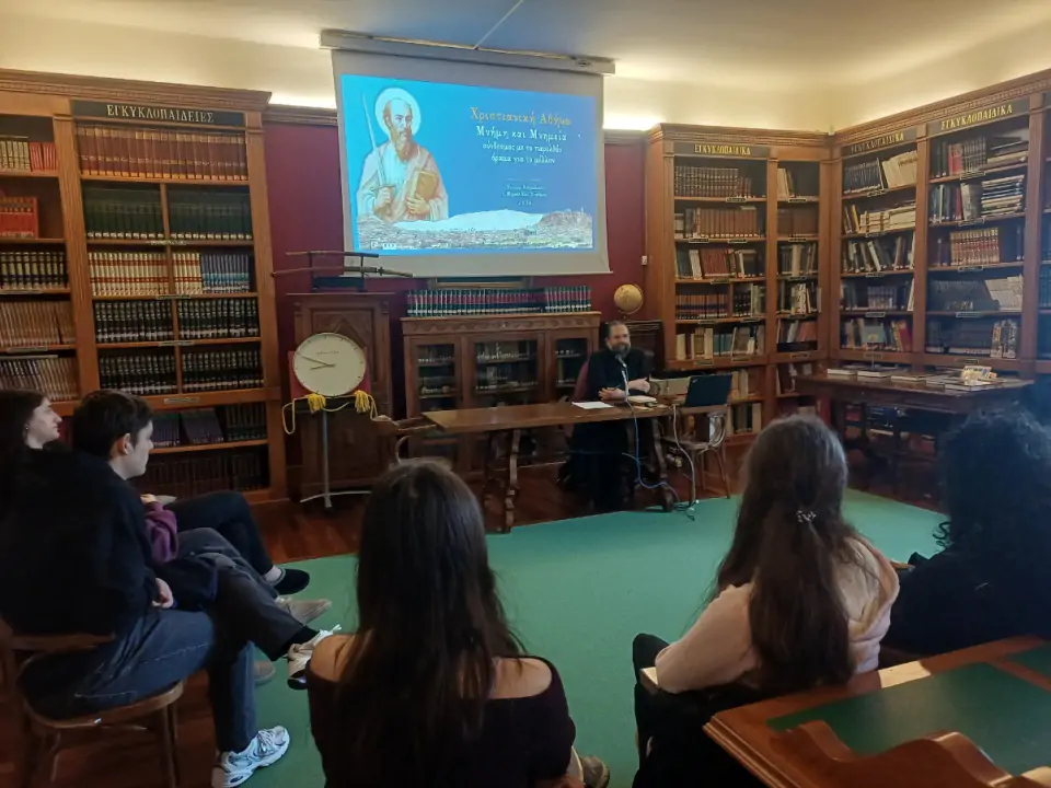 Την Τρίτη 27 Ιανουαρίου, τα Τμήματα Α2 και Α3 του Σχολείου παρακολούθησαν ομιλία του αρχιμ. Μιχαήλ Σταθάκη, αρχαιολόγου – θεολόγου, για την Χριστιανική Αθήνα, στην οποία σπούδασαν οι Άγιοι Μ. Βασίλειος και Γρηγόριος Θεολόγος.