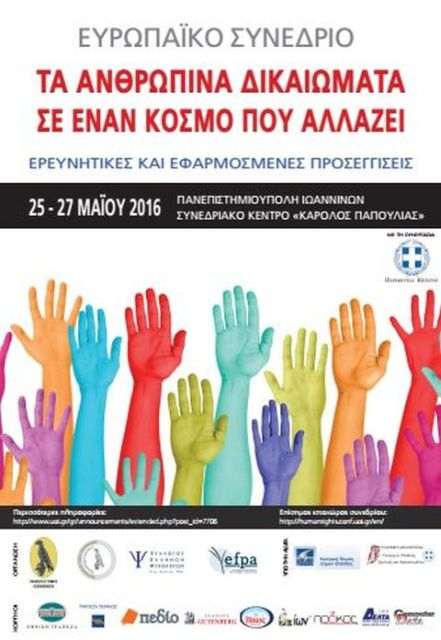 Στις 25, 26 και 27 Μαΐου 2016 η Διευθύντρια κ. Παπανικολάου Ελένη και οι δασκάλες τού Αρσακείου Δημοτικού Ιωαννίνων κ. Ευαγγέλου Υβόννη,Αθανασίου Λητώ και Γιαννακού Μαρία παρακολούθησαν το ευρωπαϊκό συνέδριο με θέμα: «Τα Ανθρώπινα Δικαιώματα σε έναν κόσμο που αλλάζει: Ερευνητικές και Εφαρμοσμένες Προσεγγίσεις», που διοργανώθηκε από το Πανεπιστήμιο Ιωαννίνων, τον Σύλλογο Ελλήνων Ψυχολόγων και την Επιτροπή για τα Ανθρώπινα Δικαιώματα τής Ευρωπαϊκής Ομοσπονδίας Συλλόγων Ψυχολόγων, στο συνεδριακό κέντρο «Κάρολος Παπούλιας» τού Πανεπιστημίου Ιωαννίνων.