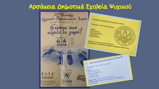 Μαθητές και μαθήτριες τού Β΄ Αρσακείου Δημοτικού Ψυχικού συμμετείχαν στο 23ο Φεστιβάλ Παραδοσιακών Χορών Δημοτικών ΑΣΙΣ και διέπρεψαν με τις χορευτικές τους ικανότητες.