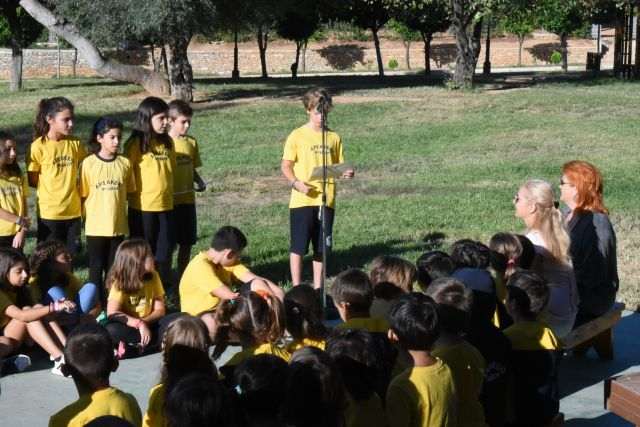 Αμέσως μετά οι μικρότεροι και οι μεγαλύτεροι μαθητές, όλοι μαζί με την ίδια δύναμη φωνής και τα ίδια γελαστά πρόσωπα, ακολούθησαν το τρυφερό νεύμα τής καθηγήτριας Μουσικής κ.Ευγενίας Βοτανοπούλου για να αποδώσουν όμορφα πολύ γνωστά και χαρούμενα τραγούδια.