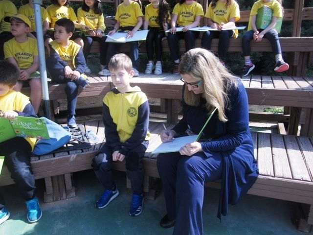 Με το αρμόνιο τής καθηγήτριας Μουσικής κ. Ευγενίας Βοτανοπούλου, οι στίχοι και οι μελωδίες τής κ. Ζωγράφου χάρισαν χαμόγελα στους μαθητές, που μέσα στην ομορφιά τής φύσης ύμνησαν τη φιλία, τη συνεργασία, τον σεβασμό και την αγάπη.