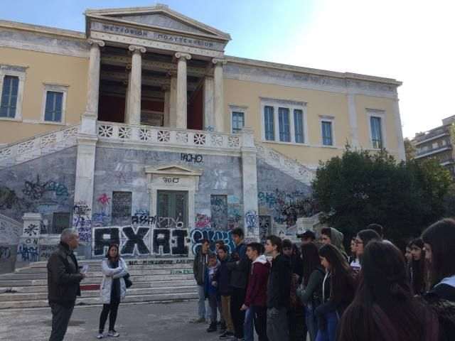 Οι μαθητές γνώρισαν από κοντά το υπέροχα διατηρημένο νεοκλασικό κτήριο τής Αρχιτεκτονικής, την ιστορία τού χώρου, την ευαισθησία των σπουδαστών για τα κοινωνικά προβλήματα, τα προβλήματα που προκαλούνται από ομάδες ατόμων εκτός Σχολής, καθώς επίσης τα μαθήματα, τους χώρους και τη φιλοσοφία τής σχολής.