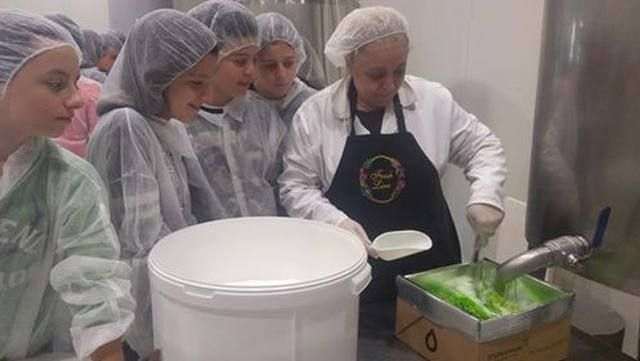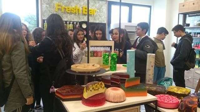 Aρχικά, οι μαθητές ενημερώθηκαν από την υπεύθυνη Μarketing τής Fresh Line κ. Ιωάννα Ντίκα για την ιστορία και τη φιλοσοφία τής εταιρείας στην παραγωγή προϊόντων από φυσικά συστατικά τής ελληνικής γης (βότανα, καρπούς, άνθη, φρούτα, λαχανικά, μέλι, ελαιόλαδο) με χειροποίητες τεχνικές καθώς και για την παρουσία τής εταιρείας σε πολλές χώρες τού εξωτερικού. Στη συνέχεια ξεναγήθηκαν σε ένα πρότυπο κατάστημα, στις αποθήκες και στους χώρους παραγωγής και συσκευασίας, όπου παρακολούθησαν όλη τη γραμμή παραγωγής των προϊόντων της. Τέλος, τα παιδιά είχαν τη μοναδική εμπειρία να εμπλακούν με ιδιαίτερο ζήλο τόσο στη διαδικασία παραγωγής σαπουνιών και αλάτων μπάνιου όσο και στη συσκευασία τελικών προϊόντων.