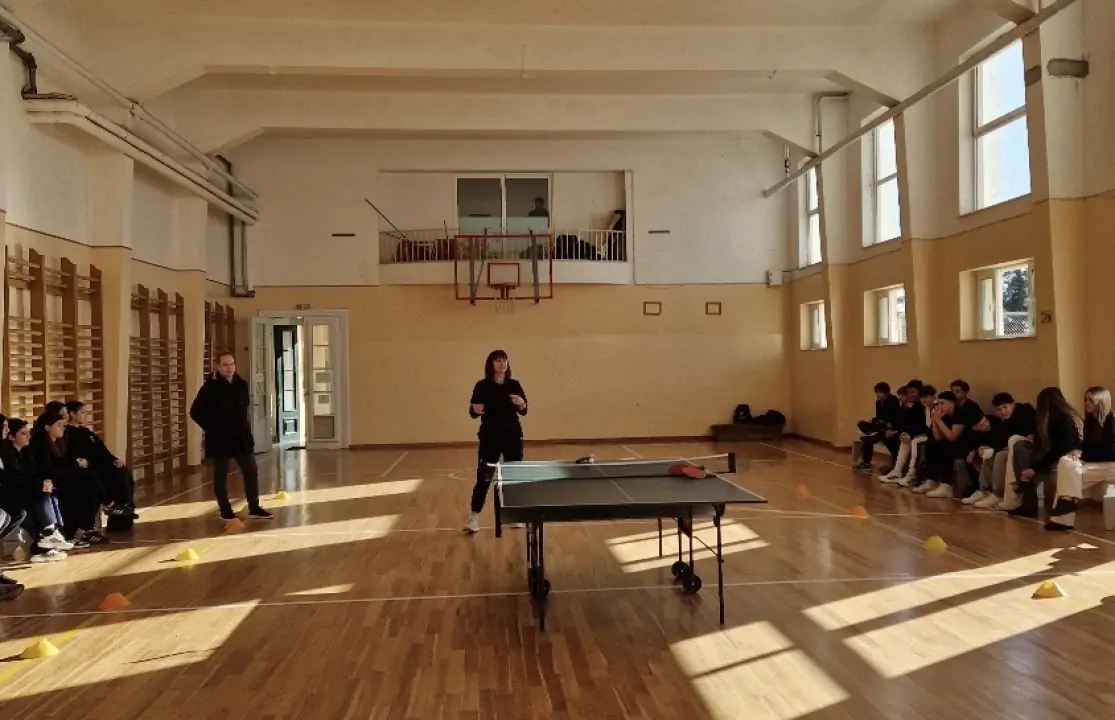 Η κυρία Τουρσουνίδου παρουσίασε το άθλημα στους μαθητές των τμημάτων Β1 και Β3, οι οποίοι παρακολούθησαν στη συνέχεια αγώνα επίδειξης μεταξύ των συμμαθητών τους Νικολέτας Περδικάρη από το τμήμα Β3 και του Δημήτρη Αλεξανδρίδη από το Β1, αθλητών της Επιτραπέζιας Αντισφαίρισης, μπαίνοντας στον ρόλο των φιλάθλων.
