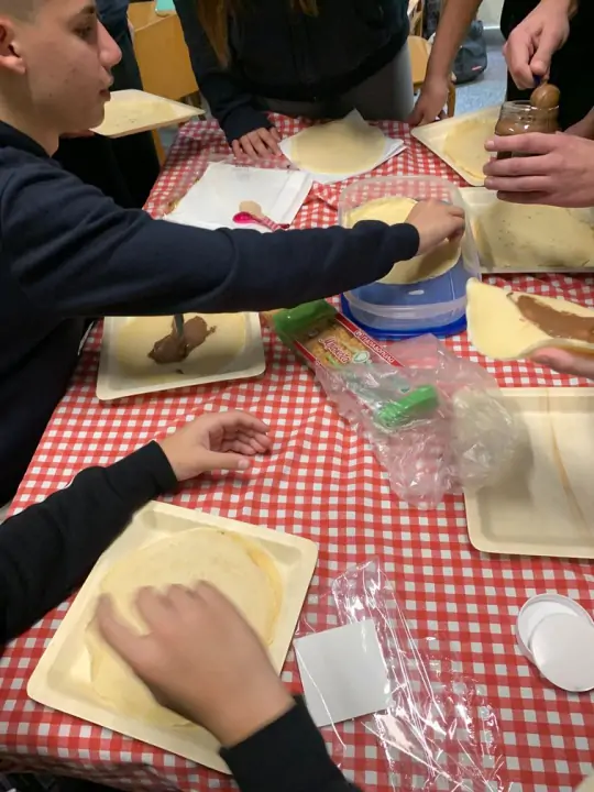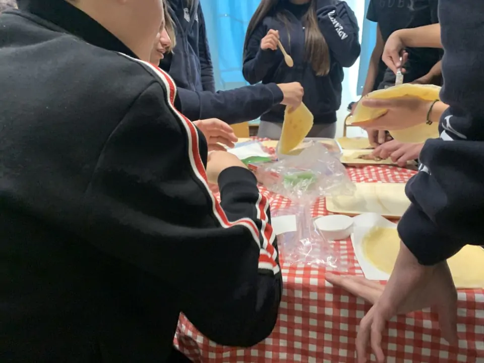 Τέλος, σε μία προσπάθεια βιωματικής προσέγγισης του εθίμου παρασκεύασαν κρέπες στην τάξη και μοιράστηκαν την εμπειρία αυτή με τους συμμαθητές τους και τις καθηγήτριές τους κ. Αθηνά Καλλιβρούση και κ. Έρη Λιάκου.