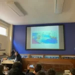 Κατά την επίσκεψή τους η κ. Φανή Τριπολιτσιώτου, Γεωλόγο και Υπεύθυνη του Μουσείου Φυσικής Ιστορίας παρουσίασε το θέμα «Κινήσεις λιθοσφαιρικών πλακών: Σεισμοί, ηφαίστεια, ορογενέσεις – Το παράδειγμα της Σαντορίνης».