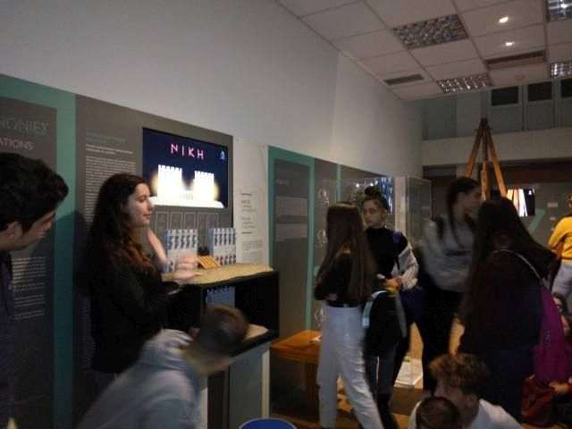 Στο πρόσφατα εγκαινιασμένο Μουσείο υπήρχαν εκθέματα-αναπαραστάσεις των τεχνολογικών επινοήσεων τής αρχαιότητας. Ο βαρουλκός, ο υδραυλικός ατέρμονας κοχλίας και το ατμοτηλεβόλο τού Αρχιμήδη, ανυψωτικές μηχανές φορτίων, η πυροσβεστική αντλία και ο παντογράφος τού Ήρωνος, η κούπα τού Πυθαγόρα, ο τοξωτός τόρνος, ο κρυπτογραφικός δίσκος τού Αινεία, ο υπολογιστικός μηχανισμός των Αντικυθήρων, ο πολυβόλος καταπέλτης τού Διονυσίου, η αυτόματη κρήνη (σιντριβάνι), το ξυπνητήρι τού Πλάτωνος, το υδραυλικό ρολόι τού Αρχιμήδη, το αυτόματο σπονδείο με κερματοδέκτη (ο πρώτος αυτόματος πωλητής), η αιολόσφαιρα τού Ήρωνος (η πρώτη ατμομηχανή) και η αυτόματη υπηρέτρια τού Φίλωνος (το πρώτο ρομπότ) ήταν μερικά από τα εκθέματα που εντυπωσίασαν τους μαθητές.
