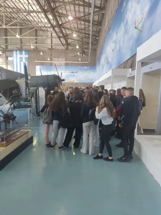 Η υπεύθυνη αξιωματικός του Μουσείου ξενάγησε την ομάδα στα εσωτερικά και εξωτερικά εκθέματα, παρουσιάζοντας σημαντικές πτυχές της ιστορίας της Ελληνικής Αεροπορίας από τον Β΄ Παγκόσμιο Πόλεμο έως και τη δεκαετία του ’80. Ιδιαίτερο ενδιαφέρον είχε η ανάλυση με την οποία συνέδεε τα ιστορικά και πολιτικά γεγονότα με την τεχνολογική εξέλιξη των αεροσκαφών, προσφέροντας στους μαθητές μια ολοκληρωμένη εικόνα για τον ρόλο και την πορεία της Πολεμικής Αεροπορίας.