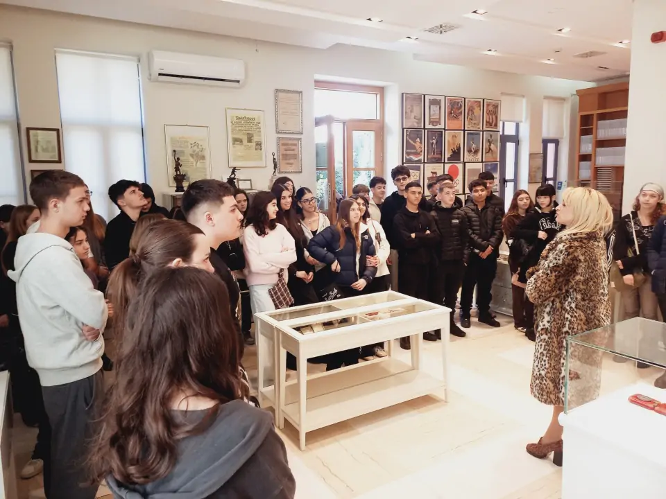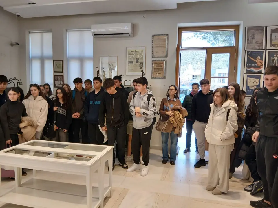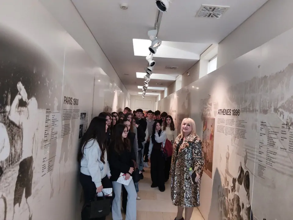 Στο μουσείο μας υποδέχτηκε η υπεύθυνη κα Ειρήνη Σπανού. Μίλησε για τους πρώτους σύγχρονους Ολυμπιακούς Αγώνες του 1896 στην Αθήνα και τους εμπνευστές-διοργανωτές τους, τον Γάλλο βαρόνο Πιέρ ντε Κουμπερτέν και τον Έλληνα λογοτέχνη Δημήτριο Βικέλα. Για τον φίλο τους, Μισέλ Μπρεάλ, που είχε την ιδέα για το αγώνισμα του Μαραθωνίου στα χνάρια εκείνου του αρχαίο οπλίτη. Για τον Μανιάτη Χαρίλαο Βασιλάκο, τον πρώτο αθλητή στην ιστορία που κέρδισε μαραθώνιο στους προκριματικούς και τον Μαρουσιώτη νερουλά, τον Σπύρο Λούη, που κέρδισε στον τελικό και πήρε το μετάλλιο το οποίο και είδαμε στο μουσείο. Σε μια από τις φωτογραφίες θα δείτε τον φίλο και συμμαθητή μας Σωτήρη Βιτώρο, το γένος Βασιλάκου εκ μητρός, στο χώρο του μουσείου που είναι αφιερωμένος στον σπουδαίο μαραθωνοδρόμο πρόγονό του!