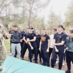 Στο στρατόπεδο είδαμε και πιάσαμε τα όπλα των ΟΥΚάδων και φάγαμε κάτι ελαφρύ στην καντίνα, όπου γνωρίσαμε άντρες με τη «βατραχοπουλάδα». Φάγαμε ελαφρά, ίσα να πάρουμε δυνάμεις, διότι μετά ο υποπλοίαρχος κ. Περδικέας μας πήγε στον στίβο μάχης. Εκεί, με δύο μαθητές του, φρέσκους ΟΥΚάδες, που τον φώναζαν «δάσκαλε», μας έδειξε την τεχνική για κάθε εμπόδιο. Περάσαμε, όσοι ήθελαν, τα εμπόδια αγόρια -και κορίτσια- και ένας καθηγητής ακόμα! Κάθε εμπόδιο ήταν και μια αφορμή να μάθουμε τον εαυτό μας: Αν είμαστε σεμνοί ή αν έχουμε ροπή προς το «φλεξάρισμα», αν είμαστε συγκεντρωμένοι ή επιπόλαιοι, αν έχουμε μόνο μυς ή και μυαλό. Κατά τη διάρκεια της «εκπαίδευσής» μας εντύπωση έκανε σε όλους ο συνδυασμός αυστηρότητας και προσήνειας του κ. Περδικέα καθώς και η ταπεινόφρων λεβεντιά των δύο του μαθητών. Μέχρι και στον καθηγητή έκανε παρατηρήσεις!