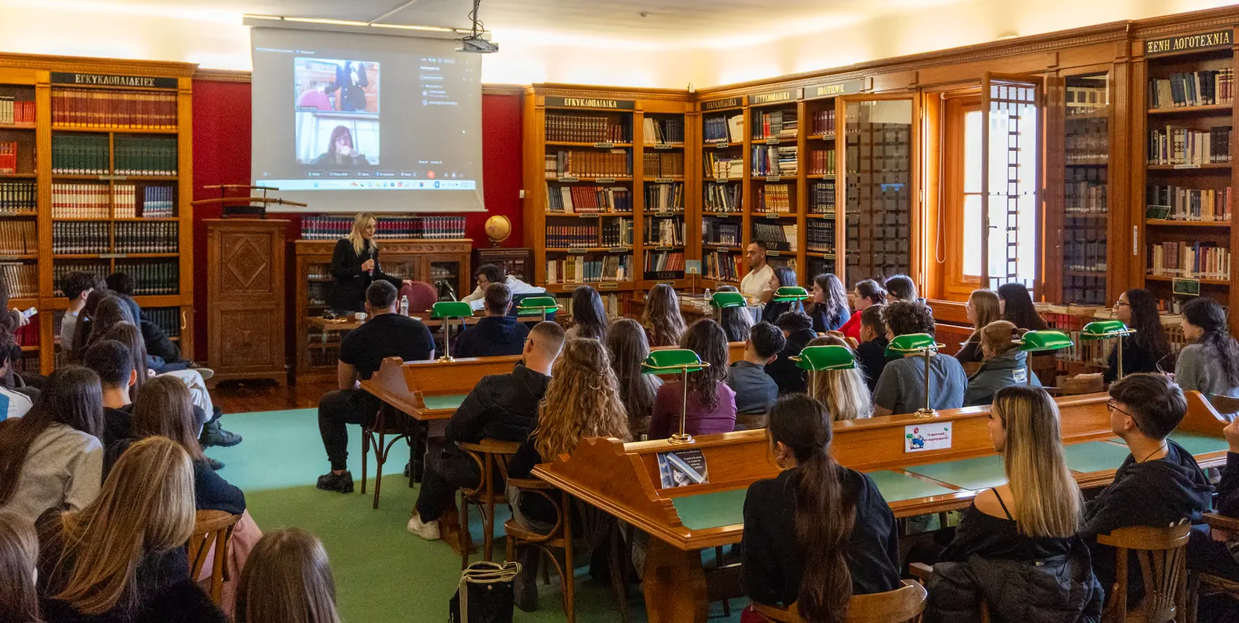 Η κυρία Μελέτη συνομίλησε με τους μαθητές και τις μαθήτριες του σχολείου μας για τον ρόλο των κοινωνικών δικτύων στη σύγχρονη κοινωνία, εστιάζοντας στις ευκαιρίες αλλά και στις προκλήσεις που αυτά δημιουργούν, ιδιαίτερα για τους νέους.