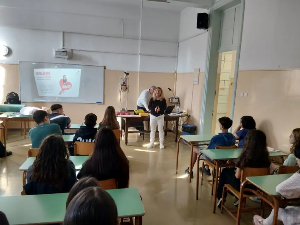 Με αφορμή την παγκόσμια ημέρα επανεκκίνησης καρδιάς, στις 16 Οκτωβρίου 2025, υλοποιήθηκε στο Β’ Αρσάκειο Λύκειο Ψυχικού η πρακτική εξάσκηση των μαθητών/τριών της Α΄ Λυκείου στο εκπαιδευτικό πρόγραμμα του KIDS SAVE LIVES. Η πρακτική εξάσκηση περιλάμβανε α) αντιμετώπιση θύματος που δεν αναπνέει β)χρήση απινιδωτή γ)αντιμετώπιση θύματος από ξένο σώμα δ) πρακτική ΚΑΡΠΑ με τη χρήση εκπαιδευτικών προπλασμάτων και αναφορές σε άλλα θέματα πρώτων βοηθειών. Την πρακτική ανέλαβε και υλοποίησε ο Καθηγητής Φυσικής Αγωγής ,Φυσικοθεραπευτής και Πιστοποιημένος από το πρόγραμμα KIDS SAVE LIVES, κος Κάτσικας Ευθύμιος με την αμέριστη βοήθεια της Νοσηλεύτριας των Αρσακείων Σχολείων Ψυχικού, κας Βάσως Κυπραίου. Οι μαθητές/τριες παρακολούθησαν με μεγάλο ενδιαφέρον το πρόγραμμα και υπέβαλαν πολλές ερωτήσεις στους εκπαιδευτές. Έκαναν εκτενή χρήση των εκπαιδευτικών προπλασμάτων και πρακτική εξάσκηση μεταξύ τους. Το εκπαιδευτικό πρόγραμμα KIDS SAVE LIVES ,έχει ξεκινήσει από πέρσι στα σχολεία μας και ευελπιστούμε να γίνει θεσμός, ώστε να μπορεί να παρέχει χρήσιμες γνώσεις ζωής στους μαθητές /τριες του.