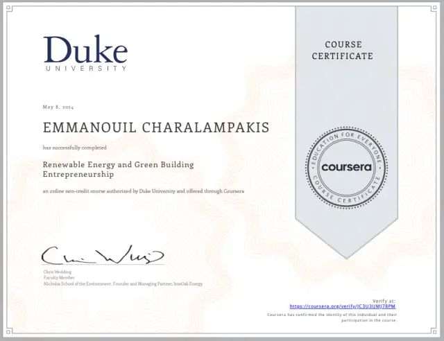 Ο μαθητής τού Α΄4 τμήματος τού Β΄ Αρσακείου Λυκείου Ψυχικού Χαραλαμπάκης Εμμανουήλ ολοκλήρωσε με επιτυχία διαδικτυακό μάθημα, διάρκειας τριών εβδομάδων, εγκεκριμένο από το Πανεπιστήμιο Duke, που προσφέρεται μέσω τής πλατφόρμας Coursera.