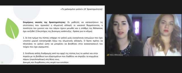 Η προϊσταμένη τού Αρσακείου Νηπιαγωγείου Ιωαννίνων κ. Γεωργία Πήττα και η δασκάλα κ. Λητώ Αθανασίου παρουσίασαν εισήγηση με τίτλο «Δραστηριότητες για την κλιματική αλλαγή στο νηπιαγωγείο με τη χρήση εκπαιδευτικής ρομποτικής» στο 5ο Πανελλήνιο Συνέδριο με τίτλο «Εκπαίδευση στον 21ο αιώνα: Ανάπτυξη τής κριτικής σκέψης, τής δημιουργικότητας και τής καινοτομίας».