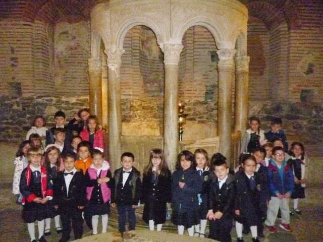 Στη συνέχεια ξεναγήθηκαν στο εσωτερικό τού ναού, παρατηρώντας τα τμήματά του και την ιδιαίτερη αρχιτεκτονική του. Εντόπισαν χαρακτηριστικά σημεία από τις διάφορες εποχές, ανάμεσα στις καταστροφές και τις επισκευές που έχει υποστεί ο ναός, και παρατήρησαν τις αγιογραφίες, τις ιστορικές τοιχογραφίες και τα περίφημα ψηφιδωτά. Κατεβαίνοντας στην κρύπτη τού ναού, περιηγήθηκαν στους χώρους όπου ο Άγιος φυλακίστηκε και μαρτύρησε και είδαν το σημείο από όπου κάθε χρόνο, ανήμερα τής γιορτής του, αναβλύζει το μύρο τού Μυροβλύτη Αγίου Δημητρίου.