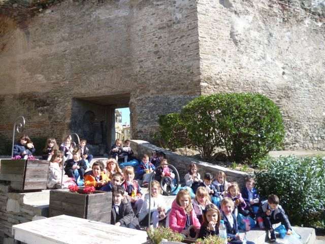 Η εξόρμηση ολοκληρώθηκε με την μετάβαση στα κάστρα τής Θεσσαλονίκης, όπου τα παιδιά απόλαυσαν τον φθινοπωρινό ήλιο, προγευματίζοντας δίπλα στα τείχη. Περπάτησαν και είδαν από κοντά τα τμήματα των τειχών που σώζονται μέχρι σήμερα, περιεργάστηκαν τα υλικά με τα οποία είναι φτιαγμένα και θαύμασαν τις πολεμίστρες, τις πύλες και το μέγεθός τους. Έφτασαν στον Πύργο τού Τριγωνίου, τον ορεινό κυλινδρικό «αδερφό» πύργο τού παραθαλάσσιου Λευκού, από όπου θαύμασαν την πανοραμική θέα τής πόλης και εντόπισαν μνημεία, κτήρια και μέρη που ήδη ξέρουν.