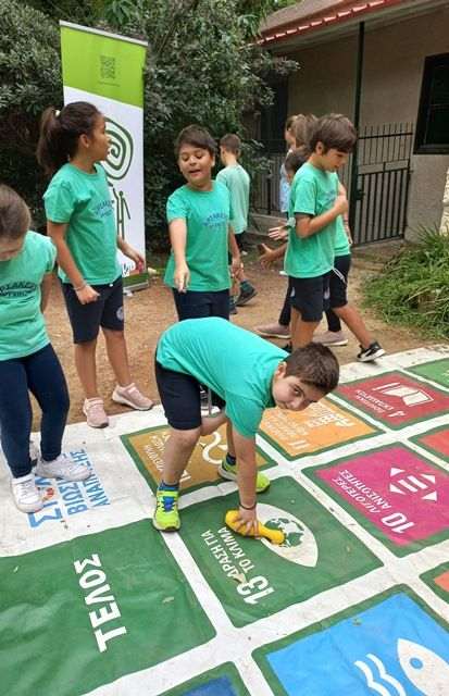 Έπειτα, μέσα από ένα επιδαπέδιο παιχνίδι, οι μαθητές με βιωματικό τρόπο γνώρισαν τους 17 παγκόσμιους στόχους για τη βιώσιμη ανάπτυξη τού πλανήτη μας, κατανόησαν πώς επηρεάζουν τη ζωή μας και ανακάλυψαν καθημερινούς τρόπους για να βοηθήσουν στην επίτευξή τους μέχρι το 2030.