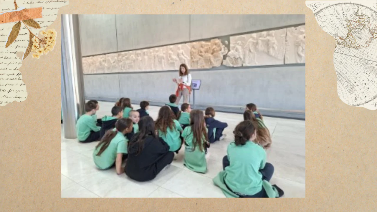 Κατά την περιήγησή τους στις αίθουσες του Μουσείου, τα παιδιά ήρθαν σ’ επαφή με σημαντικά εκθέματα της αρχαϊκής και κλασικής εποχής. Στάθηκαν με θαυμασμό μπροστά στις Καρυάτιδες και στα γλυπτά τού Παρθενώνα. Επιπλέον, παρατήρησαν λεπτομέρειες στα γλυπτά, συζήτησαν για τους μύθους που απεικονίζονται στις μετόπες και στα αετώματα και ανακάλυψαν πώς η αρχαιολογία μάς βοηθά να «διαβάζουμε» το παρελθόν.