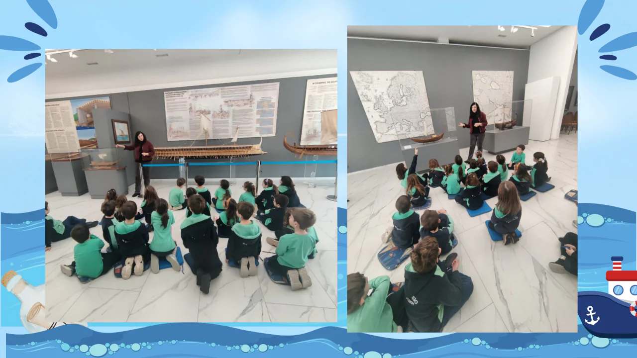 Οι θαλασσινές ιστορίες στο Ναυτικό Μουσείο ξεκίνησαν από την αρχαιότητα. Τα παιδιά γνώρισαν τους λόγους που οδήγησαν τον άνθρωπο να ταξιδέψει στη θάλασσα και έμαθαν για τη γένεση της ναυσιπλοΐας. Κατά την περιήγησή τους στα εκθέματα, παρακολούθησαν την εξέλιξη των καραβιών, από την απλή βάρκα με κουπιά έως τα σύγχρονα πλοία. Ιδιαίτερο ενδιαφέρον έδειξαν για τα ομοιώματα μιας ολκάδας (εμπορικό πλοίο) και μιας αθηναϊκής τριήρους (πολεμικό πλοίο), μέσα από τα οποία γνώρισαν τους δύο βασικούς τύπους αρχαίων πλοίων και επισήμαναν τις ομοιότητες και τις διαφορές τους.