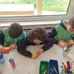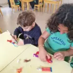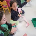 Το Νηπιαγωγείο μας μετατράπηκε σε ένα ζωντανό, πολύχρωμο αποκριάτικο εργαστήρι, όπου μικροί και μεγάλοι μαθητές γνωρίστηκαν, συνεργάστηκαν με ενθουσιασμό και βοήθησαν ο ένας τον άλλον να δημιουργήσουν χαρούμενες αποκριάτικες μάσκες. Στο τέλος της δράσης, οι μαθητές του Δημοτικού χάρισαν τις μάσκες τους στα νήπια, και όλοι μαζί, «μεταμφιεσμένοι», αντάλλαξαν ευχές για Καλές Απόκριες!