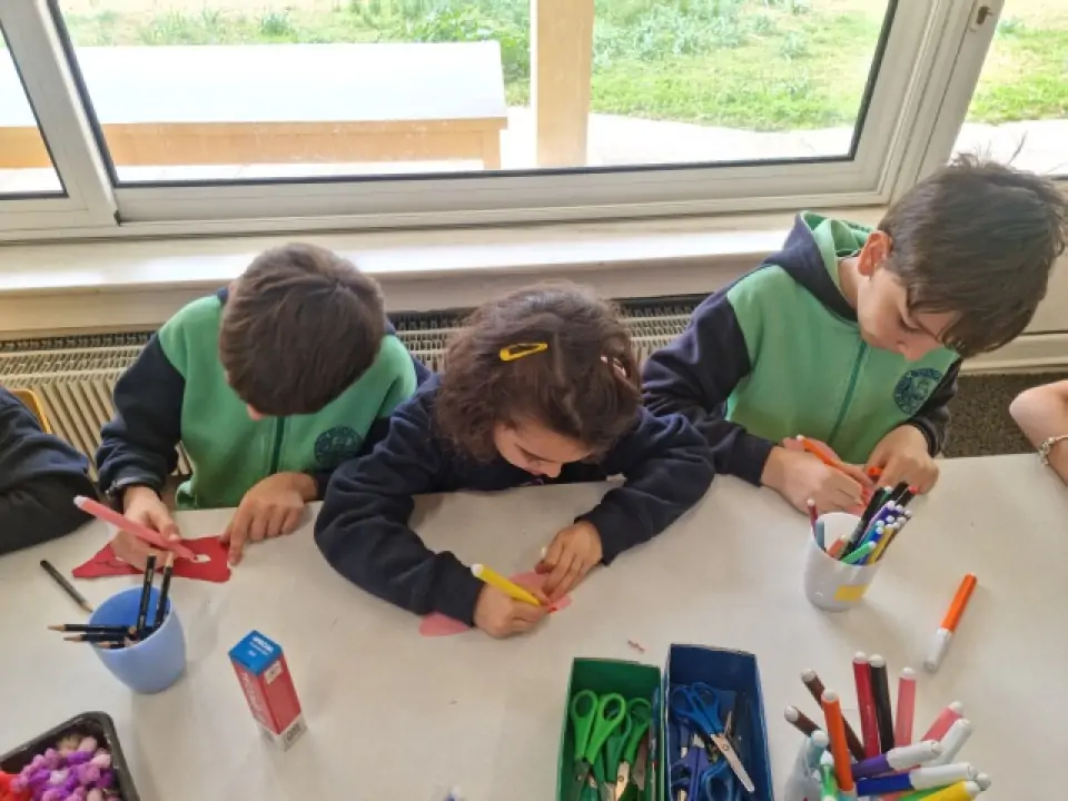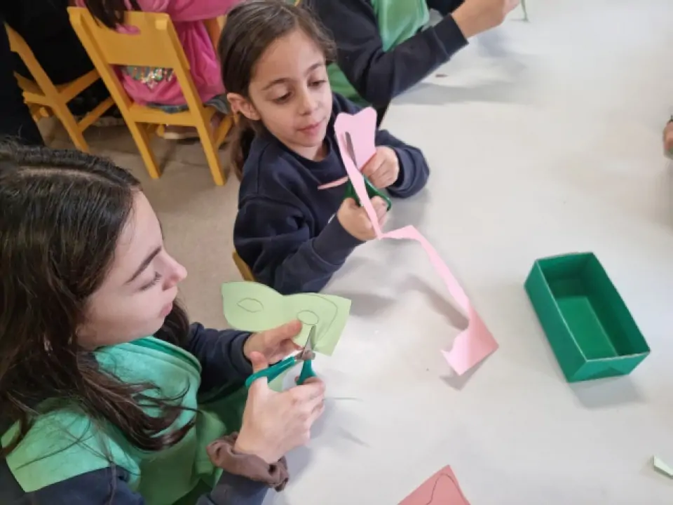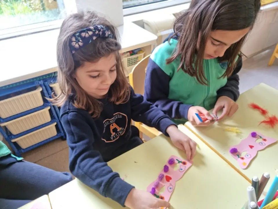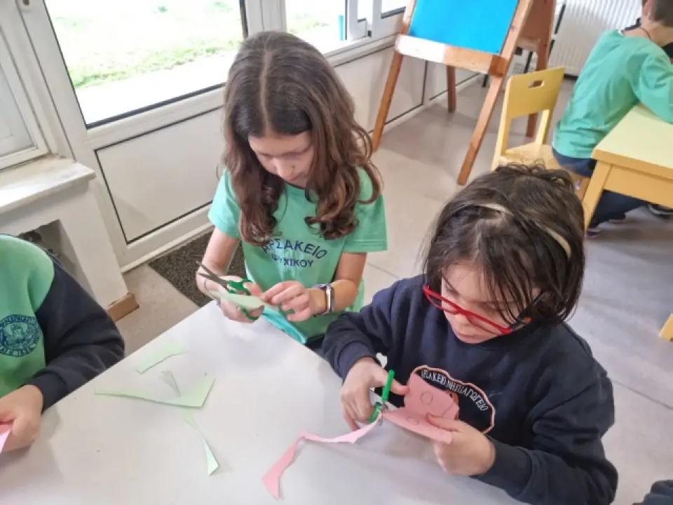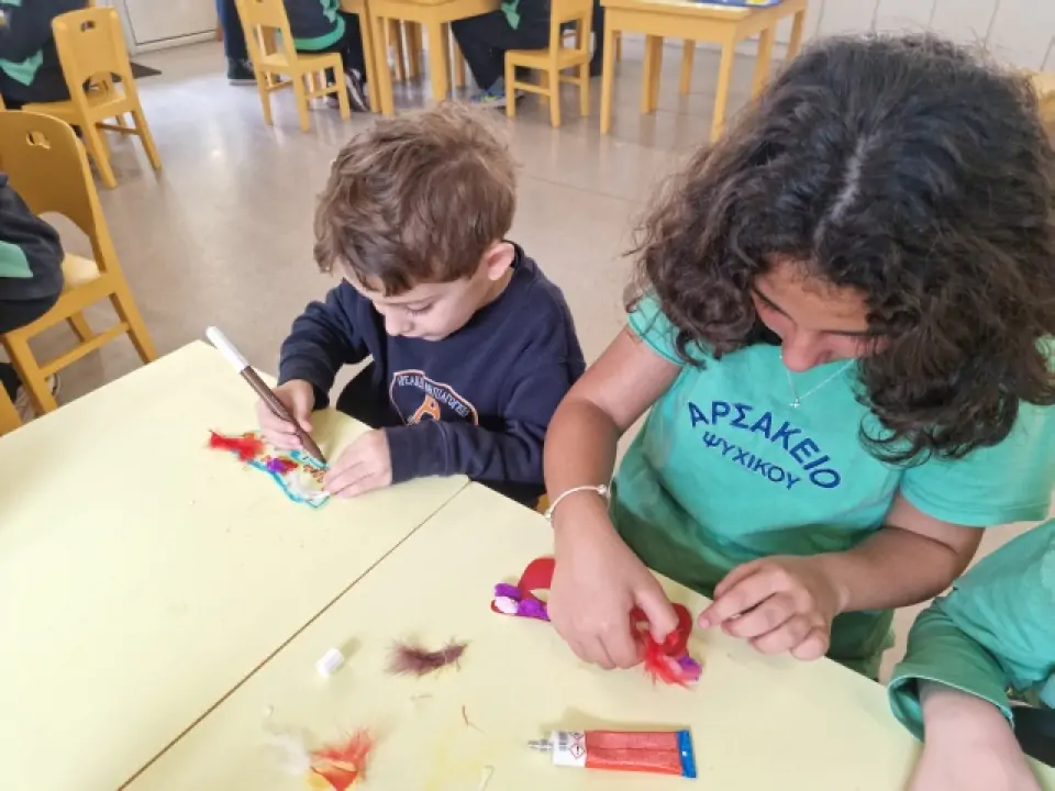 Το Νηπιαγωγείο μας μετατράπηκε σε ένα ζωντανό, πολύχρωμο αποκριάτικο εργαστήρι, όπου μικροί και μεγάλοι μαθητές γνωρίστηκαν, συνεργάστηκαν με ενθουσιασμό και βοήθησαν ο ένας τον άλλον να δημιουργήσουν χαρούμενες αποκριάτικες μάσκες. Στο τέλος της δράσης, οι μαθητές του Δημοτικού χάρισαν τις μάσκες τους στα νήπια, και όλοι μαζί, «μεταμφιεσμένοι», αντάλλαξαν ευχές για Καλές Απόκριες!