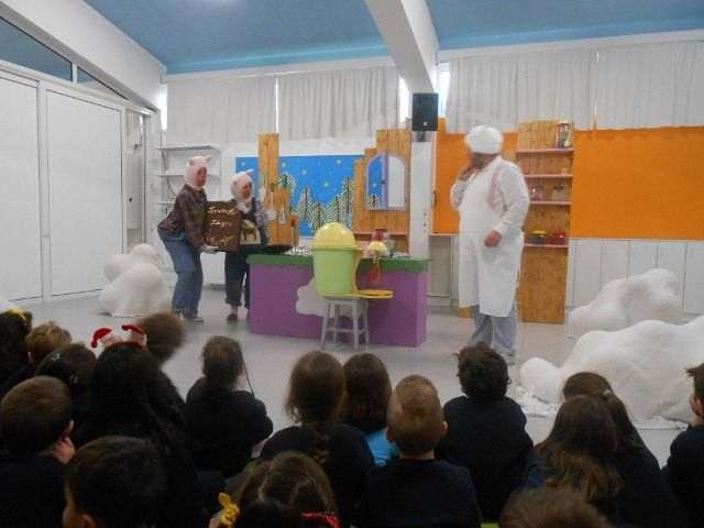 Οι μικροί μαθητές βοήθησαν με γέλια, τραγούδια και χειροκροτήματα τον Ρένο και τους φίλους του να πετύχουν τη συνταγή, διασκέδασαν πολύ και στο τέλος γεύτηκαν και από έναν μαγικό κουραμπιέ με ζάχαρη «χάχανη»!