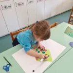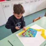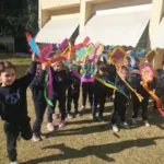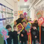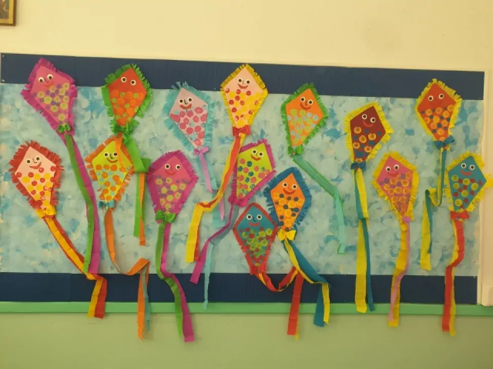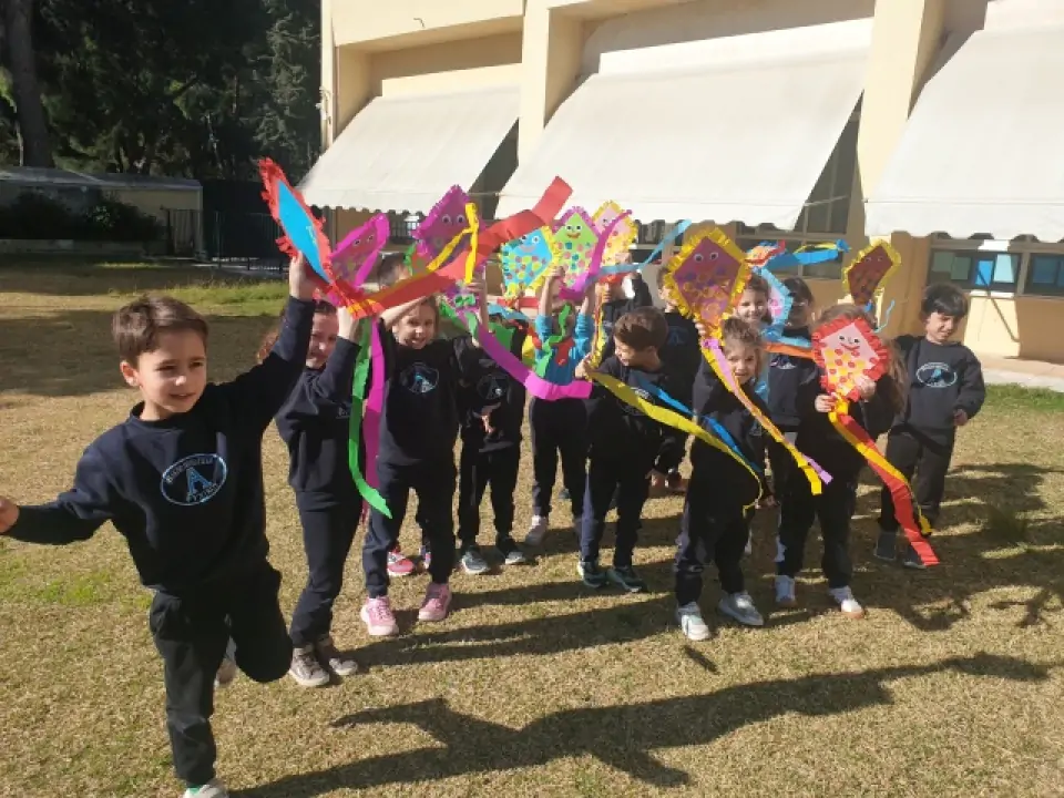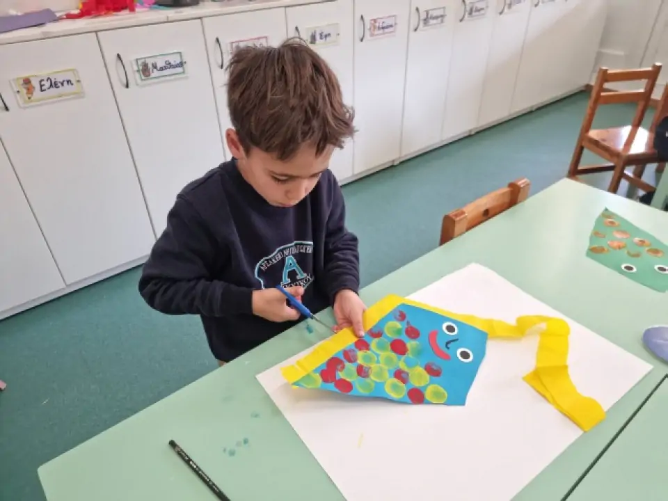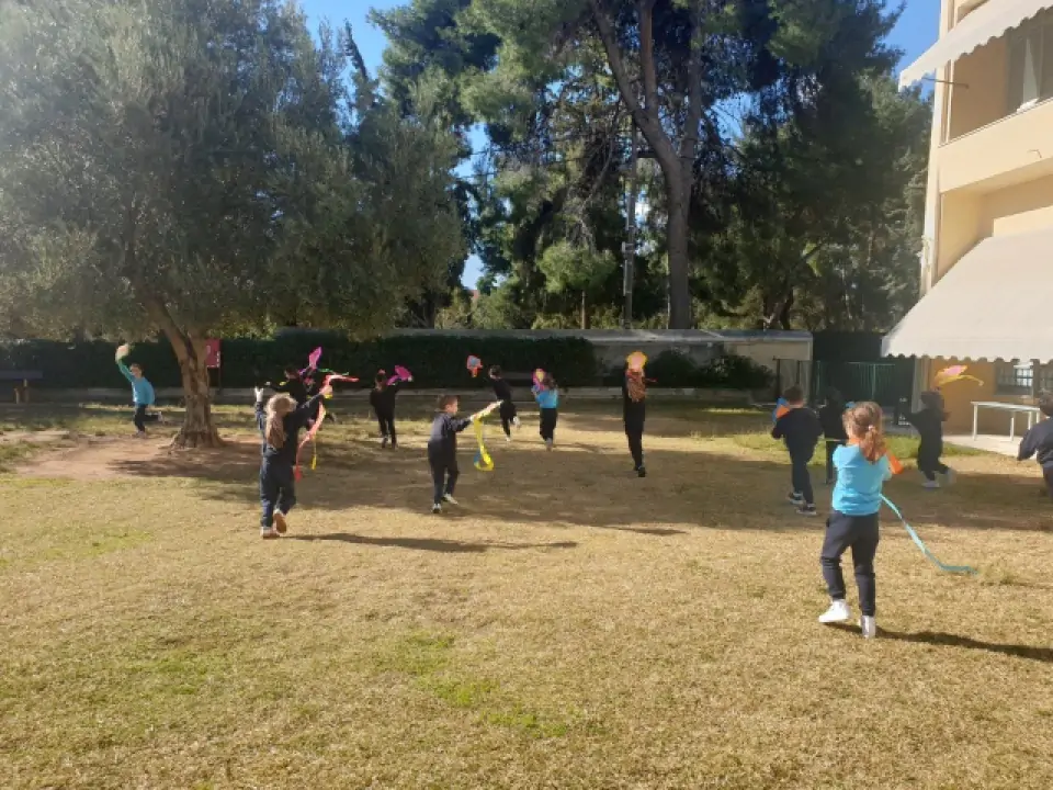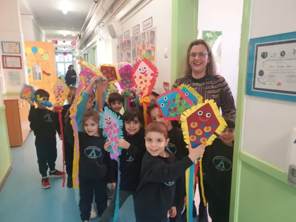 Κάθε παιδί επέλεξε χαρτόνια στα αγαπημένα του χρώματα και τα διακόσμησε με τέμπερες χρησιμοποιώντας την τεχνική τού «τυπώματος». Στη συνέχεια, οι μικροί μαθητές χρησιμοποιώντας μαρκαδόρους, στόλισαν τις κατασκευές τους, ο καθένας με τον δικό του μοναδικό τρόπο. Αφού ολοκληρώθηκαν οι δημιουργίες, τα παιδιά έπαιξαν με τους χαρταετούς τους, μέσα κι έξω από την τάξη, μοιράζοντας χαμόγελα και πολλή χαρά.