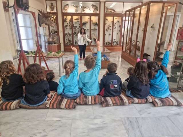 Η υπεύθυνη τού μουσείου κ. Φανή Τριπολιτσιώτου υποδέχτηκε τα παιδιά για να τα ξεναγήσει στον χώρο τού μουσείου που περιλαμβάνει συλλογές από ζώα, θηλαστικά, ερπετά, πτηνά, έντομα, απολιθώματα, όστρακα, ορυκτά και πετρώματα, ενώ διαθέτει και αναλογικό σεισμογράφο και μετεωρολογικό κλωβό. Συζήτησε και έπαιξε μαζί τους επιμορφωτικά-βιωματικά παιχνίδια και απάντησε σε όλες τις απορίες τους σχετικά με τη ζωή των ζώων, αλλά και το πώς βρέθηκαν αυτά και πώς διατηρούνται στο μουσείο.