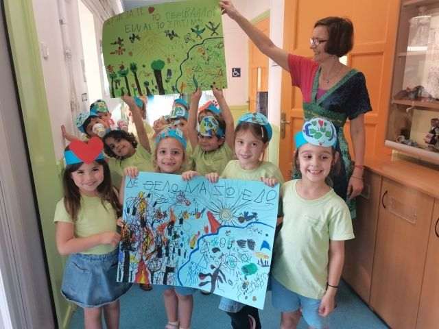 Την Τετάρτη 5 Ιουνίου 2024, με αφορμή την Παγκόσμια Ημέρα Περιβάλλοντος, τα νήπια τού τμήματος Ν.1 τού Αρσακείου Νηπιαγωγείου Ψυχικού, μαζί με την νηπιαγωγό τους κ. Αγγελική Παλαιοκαστρίτου, πραγματοποίησαν συμβολική “διαδήλωση” στους χώρους τού Νηπιαγωγείου.