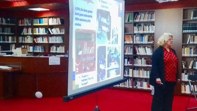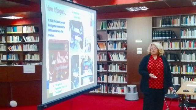 Η κ. Μεταλληνού σε συνεργασία με την κ. Β. Κοσμάτου διοργάνωσαν εργαστήριο-workshop, παρουσιάζοντας τη συμβολή κλασικών επιτραπέζιων παιγνιδιών στην αυθεντική τους μορφή (“Mensch ärgere dich nicht” – Γκρινιάρης) ή σε επεξεργασμένη μορφή (“Snaketriv”: συνδυασμός των παιχνιδιών “Φιδάκι” και “Trivial Pursuit”) στην προαγωγή τής διδακτικής και μαθησιακής διαδικασίας τής ξένης γλώσσας, ενώ κάλεσαν τους συμμετέχοντες να γνωρίσουν την ψηφιακή πλατφόρμα “Genially”, όπου, μεταξύ άλλων εφαρμογών, μπορεί κανείς να δημιουργήσει διαδικτυακές διαδραστικές δραστηριότητες με στόχο την αφομοίωση γνωστικού υλικού στη γλώσσα-στόχο.