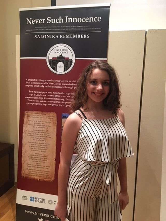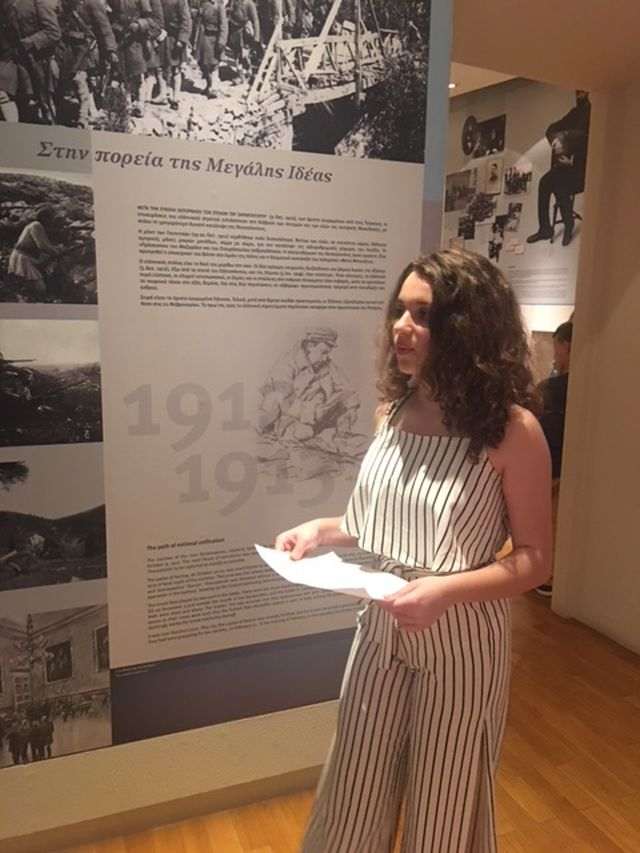 Η βράβευση συμμετοχής της μαθήτριάς μας έγινε στο Μουσείο Μακεδονικού Αγώνα, με αφορμή τα εγκαίνια της έκθεσης για τα θύματα του Α΄ Παγκοσμίου Πολέμου στο πλαίσιο του προγράμματος «Η Θεσσαλονίκη Θυμάται / Salonika Remembers».