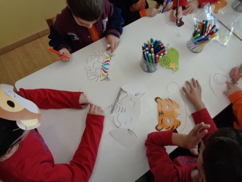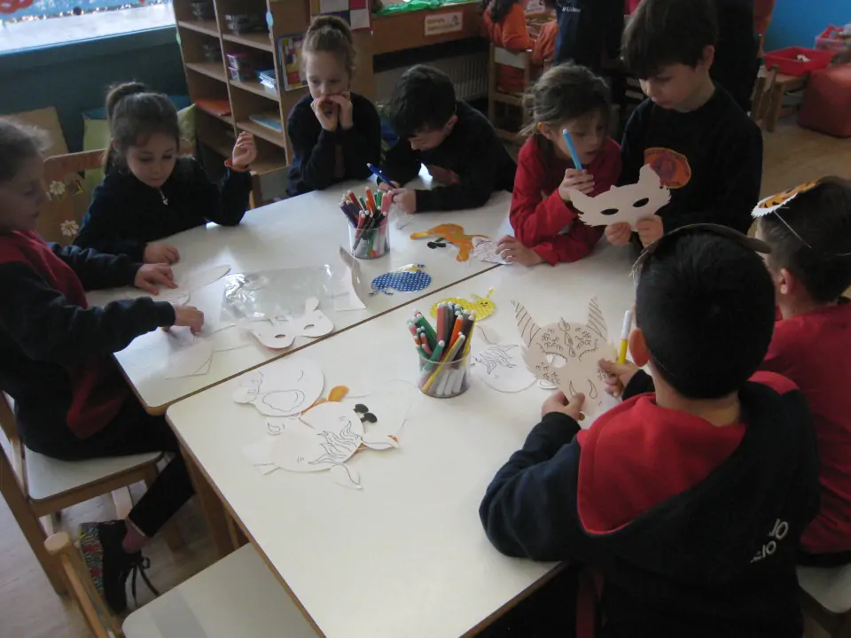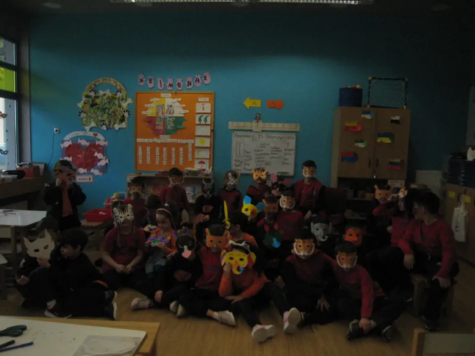 Οι μαθητές/τριες συνεργάστηκαν δημιουργικά και κατασκεύασαν αποκριάτικες μάσκες, αξιοποιώντας ποικίλα υλικά και τεχνικές. Μέσα από τη δράση αυτή ενισχύθηκαν η συνεργασία, η επικοινωνία, η δημιουργική έκφραση και η αλληλεπίδραση μεταξύ μικρότερων και μεγαλύτερων μαθητών, σε ένα κλίμα χαράς και αποδοχής.