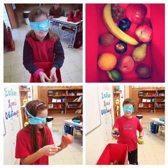 Στο τέλος αυτής τής εβδομάδας, τα παιδιά έπαιξαν ένα παιχνίδι: Ένα κουτί γέμισε με λαχταριστά φρούτα και το παιχνίδι ξεκίνησε. Οι μαθητές έκλεισαν τα μάτια τους και προσπάθησαν να μαντέψουν το φρούτο που έπιαναν, χρησιμοποιώντας μόνο δύο αισθήσεις, την αφή και την όσφρησή τους. Το παιχνίδι συνεχίστηκε και οι μαθητές έπρεπε να επιστρέψουν στη θέση τους, έχοντας τα μάτια ακόμα κλειστά. Συνειδητοποίησαν πόσο δύσκολο είναι τελικά να μην έχει κάποιος την όρασή του. Τα φρούτα έμειναν και οι μαθητές τα λαχτάρησαν. Έτσι, τα έφαγαν, αφού βέβαια έπλυναν τα χέρια τους.