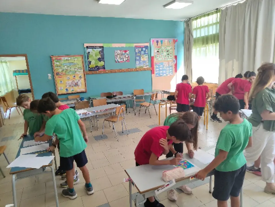 Οι μαθητές τής Δ΄ τάξης, με τις καθηγήτριες κ. Χρ. Ζαχμάνογλου και Α. Ναξάκη, συμμετείχαν με ενθουσιασμό σε διαδραστικά παιχνίδια και δράσεις, ανακαλύπτοντας με βιωματικό τρόπο τη σημασία τής γνώσης ξένων γλωσσών.
