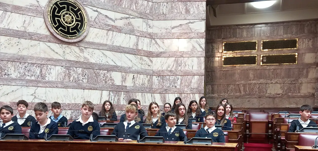 Στη συνέχεια οι μαθητές/τριες επισκέφθηκαν τη Βουλή των Ελλήνων και παρακολούθησαν ένα πολύ μικρό μέρος μιας συνεδρίασης της Ολομέλειας της Βουλής, όπου ο Πρόεδρος καλωσόρισε τους μαθητές του Σχολείου.