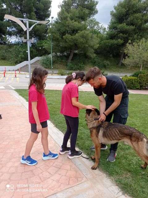 Οι μαθητές συναντήθηκαν με τους τετράποδους φίλους μας, χάρηκαν, θαύμασαν τις ικανότητές τους και συνειδητοποίησαν για ακόμη μια φορά τη σημαντική συμβολή τους στην προστασία τού ανθρώπου.