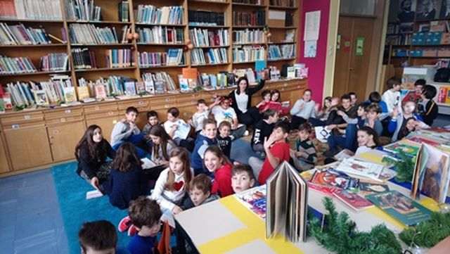 Συγκεκριμένα, ο κάθε μαθητής τής Στ΄ τάξης συνόδευσε το πρωτάκι που έχει υπ’ ευθύνη του από την αρχή τής χρονιάς στη βιβλιοθήκη και διάλεξαν από κοινού ένα βιβλίο με χριστουγεννιάτικο θέμα από την έκθεση που είχε στηθεί στον χώρο για της ημέρες των Χριστουγέννων.
