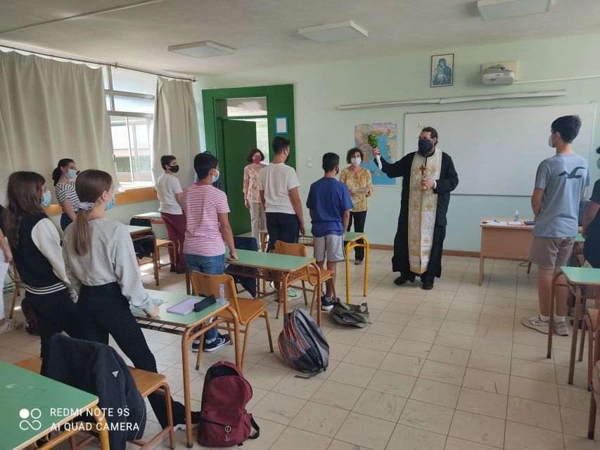 Στη συνέχεια, όπως προβλέπεται από τις οδηγίες τού Υπουργείου Παιδείας και Θρησκευμάτων, ο ιερέας επισκέφθηκε κάθε αίθουσα τής σχολικής μονάδας, όπου παρευρίσκονταν οι μαθητές και οι εκπαιδευτικοί, και τους ευχήθηκε καλή φώτιση.