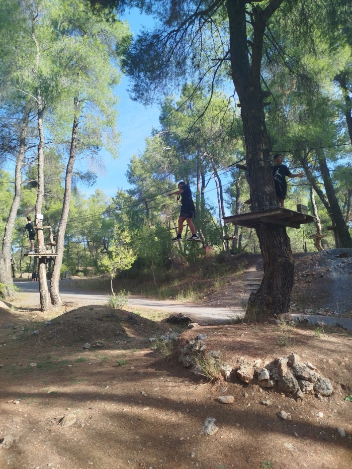 Το πάρκο δραστηριοτήτων απλώνεται σε μια τεράστια έκταση και φιλοξενεί πλήθος παιχνιδιών. Ειδικά οι εναέριες διαδρομές είναι πολύ δημοφιλείς! Τα παιδιά κατάφεραν να «πετάξουν» από δένδρο σε δένδρο και να κάνουν αναρρίχηση και zip line σε σχοινιά, με τη χρήση ειδικού εξοπλισμού, επιλέγοντας διαδρομές με κλιμακούμενο βαθμό δυσκολίας σε διάφορα ύψη και ακολουθώντας πάντα τον κανονισμό ασφαλείας και λειτουργίας, καθώς και τις οδηγίες που δίνει το προσωπικό κατά την υποχρεωτική εκπαίδευση. Έτσι, με σύμμαχο τον καλό καιρό, συνδύασαν την ψυχαγωγία με την επιστροφή στη φύση!