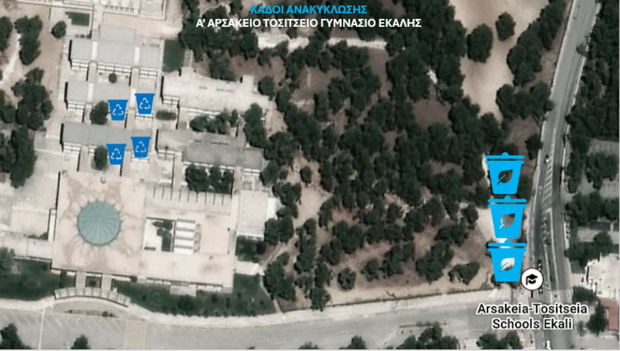 Η προστασία του περιβάλλοντος και η καλλιέργεια οικολογικής συνείδησης αποτελούν βασικούς πυλώνες της εκπαιδευτικής μας φιλοσοφίας. Στο πλαίσιο αυτό, η μαθητική ομάδα Ecolab του Α΄ Αρσακείου- Τοσιτσείου Γυμνασίου Εκάλης ανέλαβε μια ουσιαστική δράση για την ενίσχυση της ανακύκλωσης στον σχολικό χώρο, σε συνεργασία με τον Δήμο. Οι μαθητές τοποθέτησαν ευδιάκριτη σήμανση στους κάδους που βρίσκονται εντός του σχολείου, ώστε να διαχωρίζονται ξεκάθαρα οι κάδοι για χαρτί και πλαστικό. Η πρωτοβουλία αυτή διευκολύνει τη σωστή χρήση των κάδων από όλους τους μαθητές και εκπαιδευτικούς, ενισχύοντας την καθημερινή εφαρμογή της ανακύκλωσης.